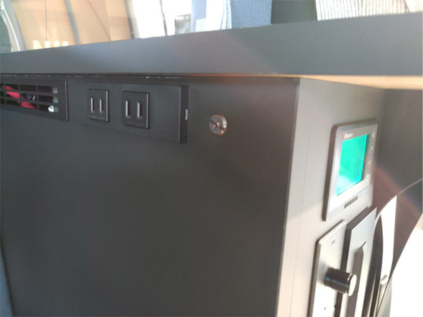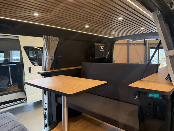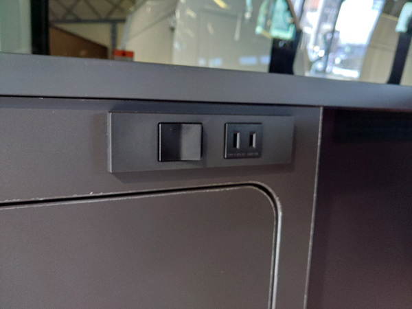 照明スイッチ、調光式スイッチ。サブバッテリー残量液晶モニター。300Ahのリチウムサブバッテリー2個を搭載してます。