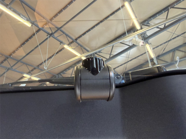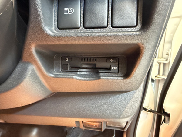 バックドア開時。左キャビネット後ろにシャワーヘッド。シャワースイッチ。足元灯スイッチ。天井照明スイッチ。